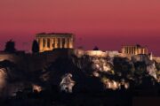 Athens is transformed in the evening. The monuments are golden against the skyline and the Athenians